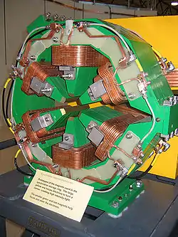 Le théorème d'Earnshaw interdit la focalisation simultanée dans deux directions à la fois. Cependant, les pôles striés d'un cyclotron ou de deux ou plusieurs aimants quadrupolaires espacés (disposés en quadrature) focalisent alternativement horizontalement et verticalement[1],[2].