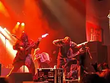 Précédant les autres groupes de folk metal, le groupe espagnol Mägo de Oz se forme aux alentours de 1989 et fait paraître un premier album éponyme en 1994[49]. Avec neuf membres dans sa formation, dont un violoniste et un flûtiste, le groupe évolue au fil des années en mélangeant power metal et folk metal influencé par de la musique celtique[49],[50]. Ils parviennent à atteindre les classements musicaux dans leur pays d'origine, en Amérique du Sud[51], et au Mexique.