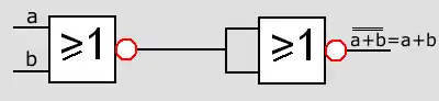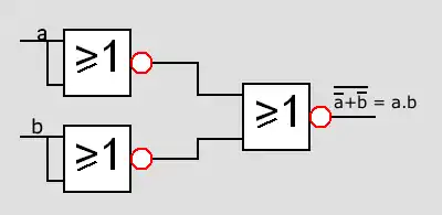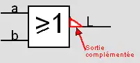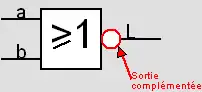 Attention cette écriture est aujourd'hui désuète, les cercles en sortie de fonction logique sont désormais des triangles. (voir section symbole)