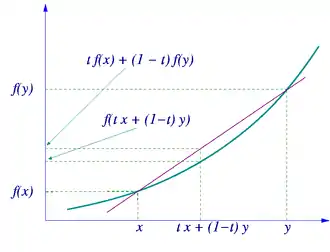 Soit un espace vectoriel (ou affine) réel. On dit qu'une fonction est strictement convexe si, pour tous et distincts dans et tout dans , on a :