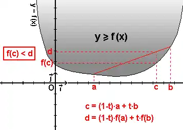 - ou si l'épigraphe de la fonction (l'ensemble des points qui sont au-dessus de son graphe) est un ensemble convexe ;