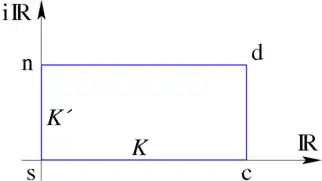Dans le plan complexe, on dispose un rectangle dont les quatre sommets sont conventionnellement notés s, c, d et n, de façon que s soit à l'origine, c au point d'abscisse K sur l'axe des réels, d au point d'affixe complexe K + iK', et n au point d'affixe iK' sur l'axe imaginaire.