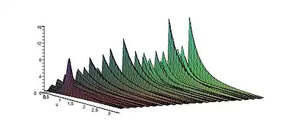 - si σ = 1 (et t ≠ 0), le module devient égal à 1 / | t |, mais l'argument (mod 2π) ne tend pas vers une constante : la série diverge mais ses oscillations restent bornées par 1 / | t |.