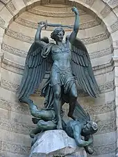 - Saint Michel terrassant le démon, dans la niche centrale, est de Francisque Duret ;