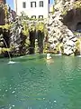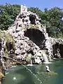 La fontaine est modelée à partir de blocs de travertin comme une grotte artificielle avec des niches, où l’eau en cascades tombe dans le réservoir ovale inférieur. Au sommet de la fontaine se trouve la statue d'un aigle. Dans les niches latérales sont cachées des statues de tritons sur les dauphins et les dragons.