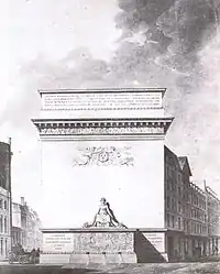 Étienne-Louis Boullée proposa un projet de fontaine : sous une longue inscription dédicatoire, l'architecte souhaitait dresser un mur nu, seulement timbré des armes de France encadrées par deux anges[4].