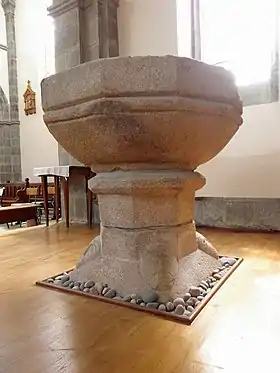 Cette cuve provenant de l'ancienne église a repris sa place dans l'église actuelle, après un long séjour dans une cour de ferme.
