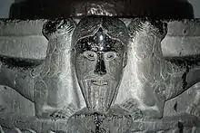 ![]() Angle de la cuve orné d'une tête barbue. |