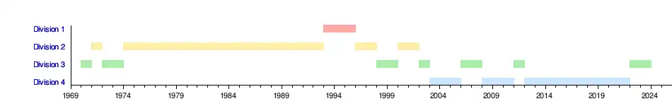 | 1985-1986 | DIV 2 | 11 | 32 | 34 | 11 | 10 | 13 | 35 | 45 | -10 | 8e tour | |
