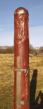 • Non loin de Montagne Aride il se trouve le poste frontière de 1909, un monument local à la réforme de Stolypine. Des obélisques similaires ont été érigés en masse en 1909, lorsque, après la loi du 9 novembre 1908, arpentage dans l'Empire russe a été réalisé, mais seuls quelques-uns sont restés. Le pilier est divisé en deux et une croix à moitié effacée est gribouillée sur l'évidement rond du médaillon[8].