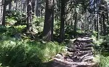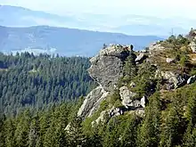 Le tripoint Allemagne - Tchéquie - Autriche se trouve sur le col entre les sommets du Plöckenstein (Plechý) et du Bayerischer Plöckenstein.