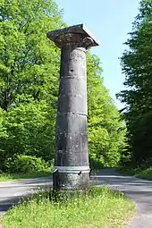 Huit colonnes, appelées bornes-colonnes ou colonnes Guidon, ont été érigées au XIXe siècle aux principaux carrefours de la forêt, alignées d'ouest en est le long de sa route centrale, pour servir de bornes géographiques[13].