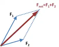 Par exemple, prenons la figure 3. Cette construction donne le même résultat si on déplace F2 afin que son extrémité corresponde à l'origine de F1, et si on prend la résultante comme étant le vecteur joignant l'extrémité de F1 à l'extrémité de F2. Cette procédure peut être répétée pour ajouter F3 à la résultante F1 + F2, et ainsi de suite. Voir par exemple la figure 4.