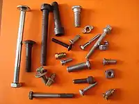 - pièces composées de parties pleines et creuses : vis avec tête à empreinte (cruciforme, 6 pans creux), écrous spéciaux,
