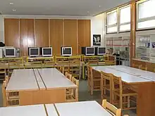 - des enseignants ou encadrants formés et en nombre suffisant. En l'absence de e-learning centers, ou en complémentarité, les cybercentres, cyberplate-formes et certains cybercafés peuvent contribuer à cet objectif, de même que la mutualisation des moyens, salles d'informatique notamment. La Commission européenne propose ainsi « que les écoles et centres de formation deviennent des centres locaux d’acquisition des connaissances polyvalents et accessibles à tous, en ayant recours aux méthodes les plus adaptées en fonction de la grande diversité des groupes cibles »[44], avec création d'un « diplôme européen pour les compétences de base en technologies de l’information, avec des procédures de délivrance décentralisées »[44].