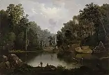 Un site du foyer Madisonville situé le long d'une crête de premier plan à l'ouest de l'ancien pont Union le long de la route entre Cincinnati et Batavia[30]. |