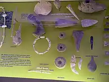 La culture est connue par l'utilisation du silex pour ses petites pointes de flèches triangulaires et ses grands couteaux triangulaires[44]. Ils fabriquaient des houes à partir de coquilles de moules. Ils ont broyé et poli les pierres dans la forme appropriée pour les haches afin d'abattre des arbres.