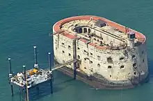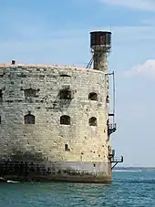 - 1857 : la construction du fort s'achève avec le second étage (cote niveau + 13,90 m) : idem + commandant, officiers, infirmerie, et terrasse avec son couronnement (cote niveau + 19,00 m) et enfin la tour de vigie (+ 27,00 m) au-dessus des plus hautes eaux[6].
