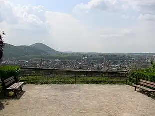 La butte des Mandeliers, haute de 314 mètres d'altitude, s'est formée grâce aux pluies acides du Pliocène, donnant naissance à des fractures rocheuses formant des réseaux d'eau[13]. La Douin et Le Moine, qui sont deux sources bregillotes, sont d'ailleurs toutes deux originaires de cette époque[13]. Le trop-plein d'eau généré par la Douin formera une petite rivière qui creusera une vallée à l'amont de laquelle s'établira Bregille-Village, et créant cette petite butte au sein du mont de Brégille[13]. Mandelier doit son nom au Vandale Alaman Chrocus qui aurait en l'an 400 campé sur le relief avec ses pillards, et qui depuis fut désignée par Mons Vandalarum puis mont Mandelier[14]. C'est aussi depuis ce lieu que le roi Louis XIV assista en 1674 à la reprise de Besançon (voir la section à ce sujet[14]).