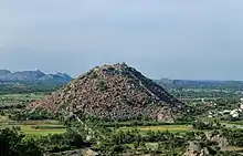 Le complexe du fort Gingee est situé sur trois collines : Krishnagiri au nord, Rajagiri à l'ouest et Chandrayandurg au sud-est[15].