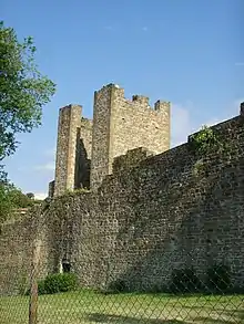 Un chemin de ronde continu longe les murs crénelés de merlons ; les mâchicoulis (piombatoi), trous d'où l'on peut verser de la poix ou de l'huile bouillante sur les ennemis sont nombreux[2].