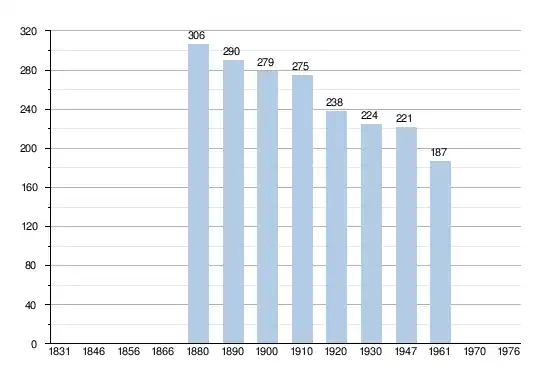 - Sources : INS, Rem. : 1831 jusqu'en 1970 = recensements, 1976 = nombre d'habitants au 31 décembre.