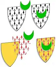 - Le vair et ses variantes fourrures (tous argent + azur)