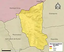 Le retrait-gonflement des sols argileux est susceptible d'engendrer des dommages importants aux bâtiments en cas d’alternance de périodes de sécheresse et de pluie. La totalité de la commune est en aléa moyen ou fort (44,5 % au niveau départemental et 48,5 % au niveau national). Sur les 27 bâtiments dénombrés sur la commune en 2019, 27 sont en aléa moyen ou fort, soit 100 %, à comparer aux 75 % au niveau départemental et 54 % au niveau national. Une cartographie de l'exposition du territoire national au retrait gonflement des sols argileux est disponible sur le site du BRGM[21],[Carte 3].