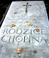 Son père, Nicolas Chopin (1771-1844), est un fils de paysan né en Lorraine, à Marainville-sur-Madon ; son éducation a été assurée par la famille Weydlich, nobles d'origine polonaise qui rentrent dans leur pays en 1787 accompagnés de l'adolescent[42]. Émigré en Pologne dès l'âge de 16 ans et bien intégré dans son pays d'élection, Nicolas Chopin connaît une ascension sociale dans la bourgeoisie intellectuelle. De précepteur des enfants de la comtesse Ludwika Skarbek en 1802[43], il devient répétiteur de français, puis professeur au lycée de Varsovie, puis vers 1810[43], à l'école militaire d'application[44]. Leur mariage a lieu à Żelazowa Wola le .