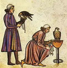 À la fin d'une existence mouvementée, l'empereur Frédéric II rédige un manuel de fauconnerie en latin, intitulé De arte venandi cum avibus (De l'art de chasser au moyen des oiseaux), dont la préface contient un éloge de l'expérience contre les théories de l'école[96]. L'ouvrage déborde largement la simple fauconnerie et contient également des détails sur la classification, l'anatomie, la morphologie, les migrations et la reproduction des oiseaux[97]. Ainsi les différentes positions des ailes durant le vol y sont remarquablement décrites[98].