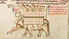 Frédéric était maintenant au sommet de sa puissance. Son deuxième fils, Conrad, fut investi du duché de Souabe, et la revendication de Wenceslas, roi de Bohême, sur certaines terres qui avaient appartenu à Philippe de Souabe fut rachetée. Une guerre contre Frédéric II d'Autriche fut déclenchée. L'empereur prit le commandement des troupes, s'empara des duchés d'Autriche et de Styrie, et les fit dépendre directement de l'Empire[72]. En , il fit élire son fils Conrad comme roi des Romains à Vienne[72]. En septembre il se rendit en Italie pour poursuivre la guerre contre les Lombards. L'empereur remporta contre eux une victoire décisive à Cortenuova le [73]. Il organisa à Crémone un triomphe au cours lequel il fit défiler sur un éléphant, cadeau du sultan Al-Kâmil, le carroccio de Milan pris au cours de la bataille[74].