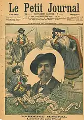 Mistral est un membre fondateur du Félibrige, membre de l'Académie de Marseille, maître ès-jeux de l'Académie des jeux floraux de Toulouse, chevalier de la Légion d'honneur en 1863[2] et, en 1904, prix Nobel de littérature pour son œuvre Mirèio, encore enseignée de nos jours[3]. Il s'agit d'un des rares prix Nobel de littérature dans une langue non reconnue officiellement par l'État auquel il appartient administrativement parlant (avec Isaac Bashevis Singer).