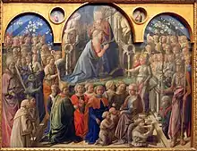 - Couronnement de la Vierge, dit Triptyque Marsuppini, v. 1460, peinture sur bois, panneau central 170 × 95 cm, musées du Vatican, Rome