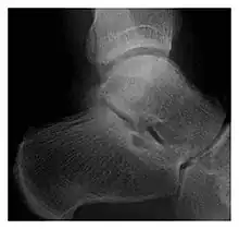 Pour vérifier la présence d'une fracture de stress, la radiographie n'est pas toujours efficace au début de la fracture, voire jamais dans certains cas. On peut donc utiliser la scintigraphie osseuse, la tomodensitométrie ou l'IRM[6] pour un diagnostic précoce ; ou la radio standard différée d'une dizaine de jours.