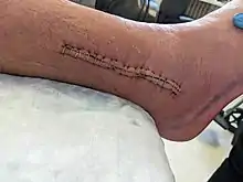 Une fracture de la cheville est la rupture d'un ou de plusieurs des os qui composent l'articulation de la cheville[2]. Les symptômes peuvent inclure une douleur, un œdème, des ecchymoses ou une incapacité à marcher sur la jambe blessée[2]. Les complications peuvent inclure une entorse haute de la cheville (en) associée, un syndrome de loge, une raideur, un cal vicieux (en) ou une arthrite post-traumatique[2],[1].