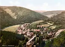 Trzy Korony vu d'Okruglica, 2007 : hors zones protégées, la forêt est moins fragmentée d'altitude mais avec des sols plus pauvres et avec moins d'essences d'arbres ; dans ce paysage semi-naturel, la fragmentation croît vers les fonds de vallée