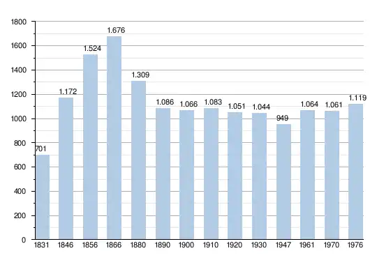- Source: DGS, 1831 à 1970=recensements population, 1976= habitants au 31 décembre