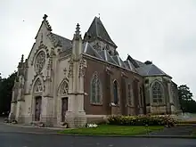 - Restes de l'ancien château, détruit pendant la Première Guerre mondiale : portail d'entrée et communs, restaurés après la guerre, situés sur le côté nord de l'église. Le château lui-même était un édifice en brique et pierre, du XVIIIe siècle. Son aspect est connu par des cartes postales anciennes. Il n'a pas été reconstruit et il n'en reste que quelques pans de murs[50].