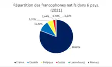 Le français est parlé, en 2023, sur tous les continents par environ 321 millions de personnes[5],[2] : 235 millions l'emploient quotidiennement et 81 millions[3] en sont des locuteurs natifs. En 2018, 80 millions d'élèves et étudiants s'instruisent en français dans le monde[6]. Selon l'Organisation internationale de la francophonie (OIF), il pourrait y avoir 700 millions de francophones sur Terre en 2050[7].