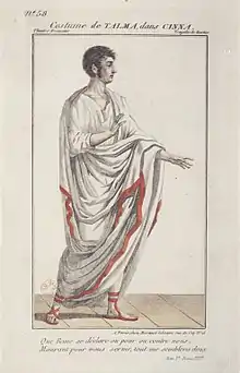 Les critiques sont unanimes sur son immense talent. Talma innove aussi dans le domaine des costumes, en incarnant Titus par exemple (dans Brutus de Voltaire), il s'habille en romain : toge, cothurnes « d'époque » et ce qui choque surtout : bras et jambes nus ! Il propose de jouer les personnages vêtus selon leur temps, et non selon la mode contemporaine. Il réforme entièrement l'esprit des costumes avec les conseils du peintre David. Pionnier d'une révolution esthétique, il adapte la révolution politique à ses idées théâtrales. Il paraît en scène sans perruque, sans déclamer le vers tragique ; il bouscule les conventions du spectacle tragique de telle sorte que la tragédie se dirigea vers un nouveau style : le drame historique et politique. Il faut noter son succès en décembre 1821 dans la tragédie Sylla d'Étienne de Jouy où son physique, allié à une perruque appropriée, lui permet de « faire revivre » Napoléon qui s’est éteint quelques mois auparavant.