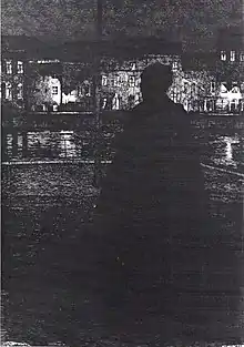 Maurice Kunel dépeint cette gravure en ces termes : « Sur le quai, longeant le parapet, une mégère. Elle porte le tablier des femmes du peuple. Un châle jeté sur ses épaules, à la mode wallonne, cache mal des appâts périmés. C'est une ruine. Dans ce visage s'ouvre une bouche malsaine et deux yeux veules, de leurs orbites tuméfiées, lancent aux passants des regards solliciteurs. Elle épie, s'offre et attend, journellement, invariablement… Et la Meuse clignote de tous ses reflets vers cette épave crépusculaire, et coule et coule et l'attend, journellement, invariablement… [5] »
