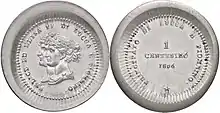 Fin décembre, la princesse approuve définitivement de nouveaux essais modifiés, et autorise également l'émission d'un type additionnel de 1 centime. Le tirage des pièces de 1 et 2 centimes est ultérieurement abandonné, les registres de frappe de l'atelier de Florence ne faisant état que de la production de pièces de 3 et 5 centimes[36].