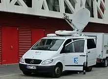 Véhicule satellite de France 3 Midi-Pyrénées couvrant le blocage de la faculté du Mirail en 2014.