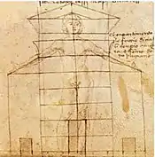 — De architectura, III, 1 : Etude de proportions d'une basilique par rapport au corps humain, Bibliothèque Nationale, Florence.
