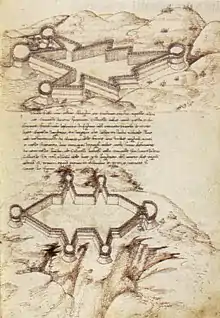 Il conçoit un système de Rocche, forteresses et fortifications dont il réalise certains exemples :