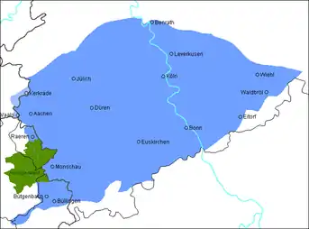 - à l'ouest, elle passe entre Eupen et Aix-la-Chapelle ;