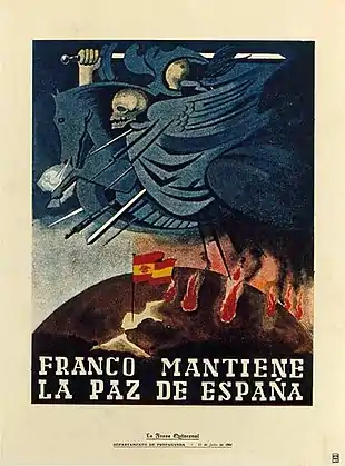 Le 17 juillet 1936, Franco, relégué aux îles Canaries par le gouvernement du Front populaire, se rallia à la dernière minute, à la suite du meurtre de José Calvo Sotelo, à la conspiration militaire en vue de réaliser un coup d’État. Celui-ci, qui eut lieu le , échoua mais marqua le début de la guerre civile espagnole. À la tête des troupes d’élite marocaines, le général Franco réussit à briser le blocus républicain du détroit de Gibraltar et avec l’aide allemande et italienne, débarqua en Andalousie, d’où allait débuter sa conquête de l’Espagne. La Junte de défense nationale, comité collégial hétéroclite des différents chefs militaires de la zone nationaliste, le nomma au poste de généralissime des armées, c’est-à-dire de commandant suprême militaire et politique, en principe pour la seule durée de la guerre civile. Bénéficiant de l’appui des dictatures fascistes et de la passivité des démocraties, l'armée nationaliste remporta la victoire, proclamée fin après la chute de Barcelone et celle de Madrid. Le bilan est lourd (entre 100 000 et 200 000 morts) et la répression s'abattit sur les vaincus (270 000 prisonniers, 400 000 à 500 000 exilés).