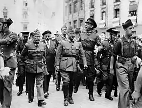• Camilo Alonso Vega, qui, entré à l’académie de Tolède en même temps que Franco, retrouva celui-ci au Maroc, puis rejoignit en 1917 Franco et Pacón à Oviedo. Pendant la guerre civile, il commanda l’une des unités de choc de l’armée nationaliste, et devint par la suite directeur de la Garde civile, ministre de l’Intérieur de 1947 à 1959, et capitaine général[51].