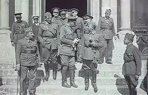 La question du Maroc avait été réglée le par la conférence internationale d’Algésiras. L’Espagne se vit attribuer le Rif, zone peuplée de tribus berbères hostiles à toute pénétration étrangère[104]. En , le sultan du Maroc accepta officiellement l’instauration d’un protectorat français sur tout le pays, et en novembre, Paris et Madrid scellèrent l’accord formel qui cédait à l’Espagne une certaine « zone d’influence », grande d’à peine 5 % du territoire, qui fut proclamée telle en , un an après l’arrivée de Franco en Afrique. En réalité, le plan s’inscrivait dans la politique coloniale française qui recherchait la collaboration de l’Espagne pour contenir les Britanniques et faire échec à toute tentative de pénétration de l’Allemagne[105],[106]. Les Espagnols avaient le sentiment de n’avoir reçu que des miettes du gâteau marocain, et l’armée espagnole, y compris Franco, en conçut une frustration certaine[107]. Franco se vit donc entraîné dans un conflit où s’entremêlaient les intérêts de l’Espagne, de la France et du Royaume-Uni, principalement, et dans lequel l’Espagne s’engagea avec témérité, sous la pression d’une part d’une armée désireuse de se dédommager des récentes défaites subies dans les colonies d’outre-mer, d’autre part d’une oligarchie financière ayant des intérêts, essentiellement miniers, dans le Maghreb[108]. Dans la Péninsule, la guerre d’Afrique eut pour effet d’élargir encore la fracture entre armée et société civile : d’un côté, devant le pacifisme croissant de l’opinion publique, beaucoup d’officiers se voyaient confirmés dans leur opinion que l’Espagne ne pouvait pas être gouvernée par des civils[109], de l’autre, l’armée était rejetée par les classes populaires, qui lui imputaient des milliers de morts, souvent des jeunes gens de familles humbles n’ayant pas été en mesure de s’acquitter de la « cote » (cuota) pour les exempter de service militaire[110].