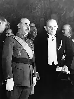 Francisco Franco Bahamonde[2] ([fɾanˈθisko ˈfɾaŋko βaaˈmonde][3]), né le à Ferrol (Galice) et mort le à Madrid, est un militaire et homme d'État espagnol, qui instaura en Espagne, puis dirigea pendant près de 40 ans, de 1936 à 1975, un régime dictatorial nommé État espagnol.